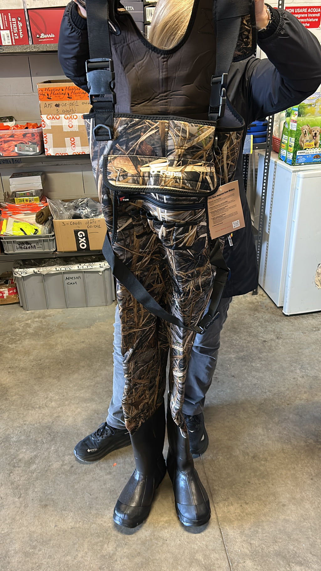 Waders Max7 in thinsulate 1500. Ampio tascone anteriore . Spallacci regolabili con velcro.